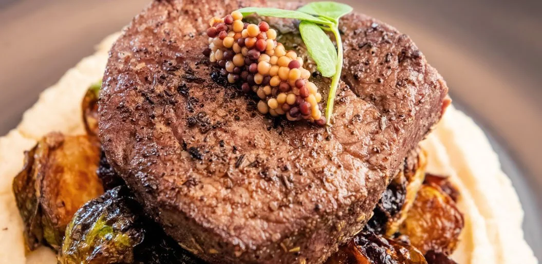 For the true steak lovers, the Revelry Signature Steak Plate is built to impress. A perfectly cooked 6 oz flat iron steak anchors the plate, balanced by maple-glazed Brussels sprouts and a silky cauliflower purΓ©e. Pickled mustard seeds add a tangy pop that cuts through the richness. And for those who believe dinner should be a little more indulgent, you can upgrade your plate to a 5 oz or 10 oz prime filet mignon. However you order it, this dish is the ultimate way to treat yourself to a classic done the Chef Shavandy way.