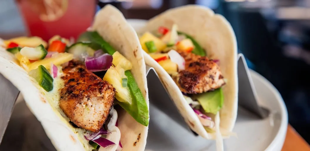 For those who like a little freshness on their plate, our Hawaiian Fish Tacos bring bright, tropical flavors straight to your table. We start with healthy grilled mahi, seasoned with a Hawaiian spice blend that adds a special kick. From there, each taco is topped off with creamy yuzu aioli, ripe avocado, and tangy pickled cabbage for crunch. The star finish is a pineapple-mango pico which Chef has created specifically to add a sweet burst of flavor to balance the savory. The tacos are rounded off with a side of Hawaiian macaroni salad for a little dose of comfort food.